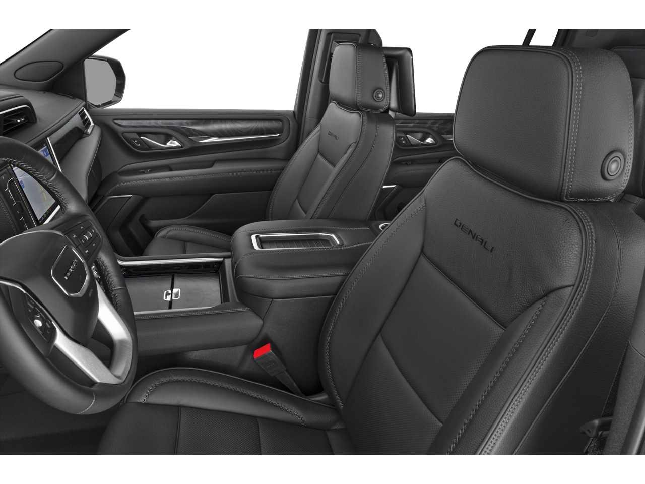 Luxury and convenience converge in the Denalis features: a dual-pane panoramic sunroof opens up the cabin, while ventilated and heated leather seats keep passengers comfortable. The digital cockpit includes a heads-up display, customizable gauge cluster, and steering wheel controls for audio, navigation, and voice-activated functions, creating a modern command center.