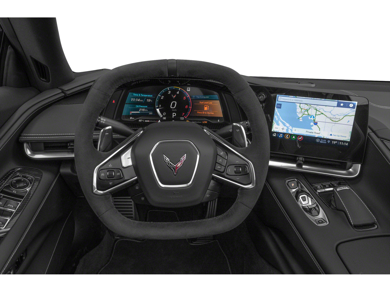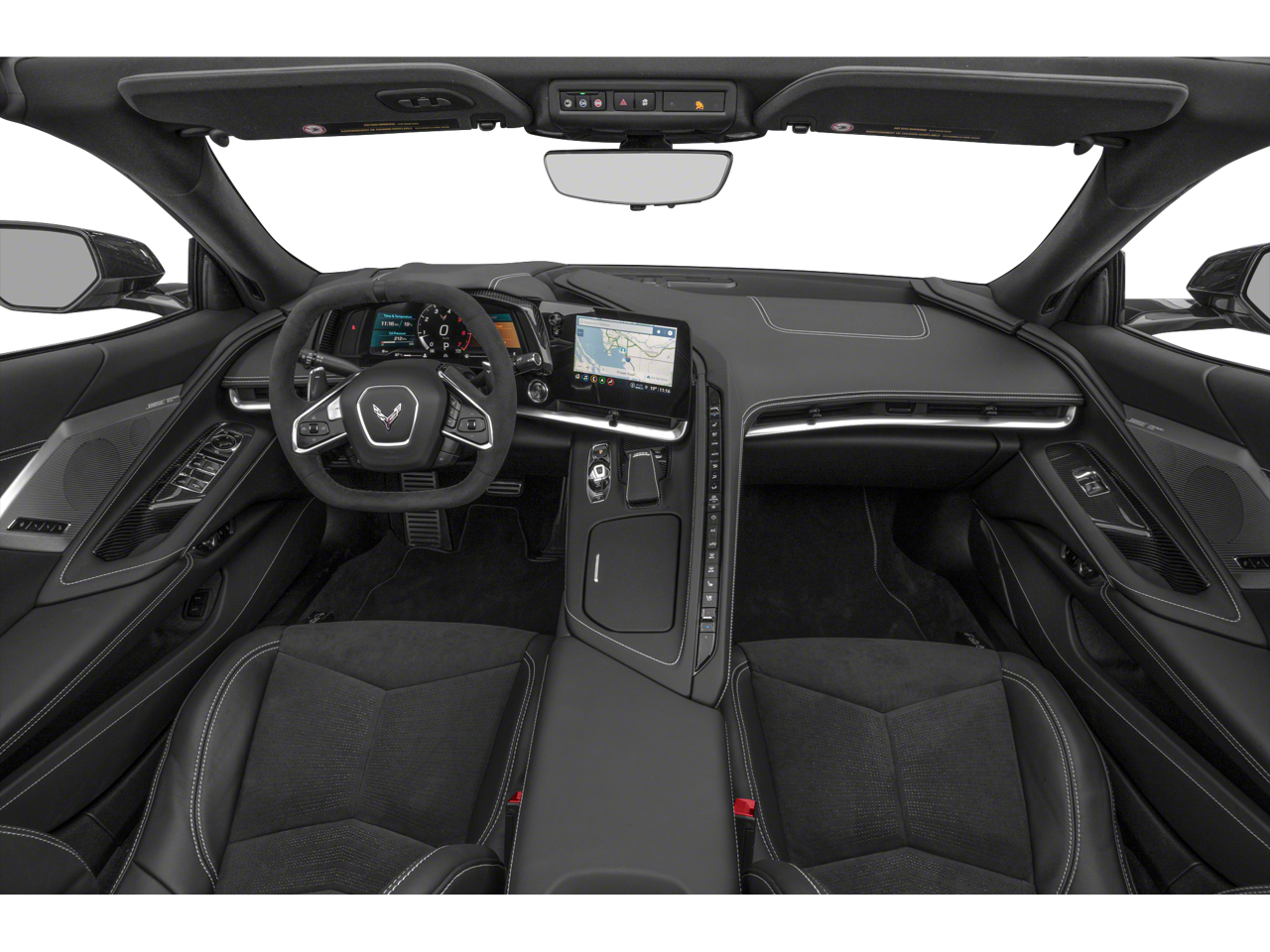 The Preferred Equipment Group 3LT and Z51 Performance Package equip the Corvette with heated and ventilated GT2 bucket seats, a Bose 14-speaker audio system, navigation, heads-up display, and dual-zone climate control, ensuring comfort and entertainment for all occupants. Convenience features like 8-way power seat adjusters and memory settings simplify life for busy families, while Apple CarPlay/Android Auto keeps everyone connected. The Custom Leather Wrapped Interior Package and convertible hardtop with Carbon Flash nacelles offer both luxury and practicality for every drive.